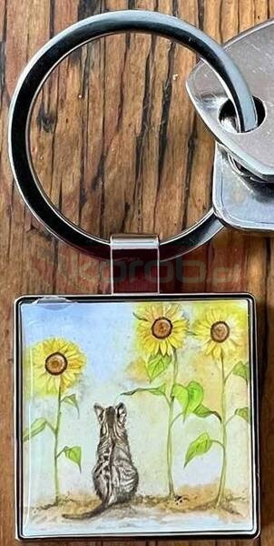 Piękny, metalowy breloczek do kluczy z oryginalnym akwarelowym wzorem.