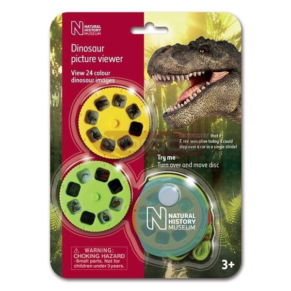 Kieszonkowa przeglądarka zdjęć Muzeum Historii Naturalnej jest idealna dla mobilnych dzieci! Zawiera trzy dyski zawierające łącznie 24 slajdy. Po prostu włóż dysk, przytrzymaj go pod światło i oglądaj swoje ulubione dinozaury. Naciśnij przycisk, aby zwolnić i zmienić dysk. Wyposażona jest w smycz, dzięki której będzie bezpieczna i zawsze z Tobą!