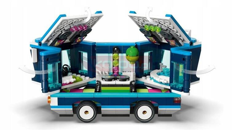 Zestaw zawiera cztery figurki minionków: Phila, Mela, Dave'a i latającego Mega Minionka Gusa, który poraz pierwszy pojawia się w filmie Despicable Me 4. Autobus ma miejsce dla kierowcy i drążek na dachu, który Gus może chwycić. Pojazd rozsuwa się w połowie z jednej strony, a dach podnosi się, odsłaniając parkiet taneczny, stanowisko dla DJ-a, gitarę elektryczną, pianino, mikrofon, oświetlenie, głośniki i jacuzzi! Wiele elementów można odczepić, aby bawić się nimi oddzielnie. Ta ciekawa zabawka dla dzieci zachwyca jaskrawymi kolorami i fajnymi akcesoriami, w tym flagą, balonem, lodami, czapeczkami, napojami, światłami, głośnikami i ekranami. Dzieci mogą także cieszyć się cyfrową zabawą dzięki aplikacji LEGO Builder.