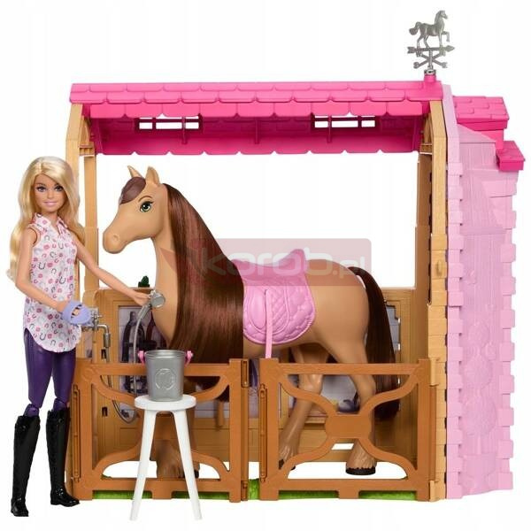 Zainspirowany serialem Netflix Barbie Mysteries: The Mysterious Horse Adventure, ten wyjątkowy zestaw ze stajnią dla koni jest pełen zabawy i zawiera ponad 25 elementów! Dzięki sześciu placom zabaw dzieci mogą pomóc lalce Barbie w poczęstowaniu zabawkowego konia pysznymi warzywami w strefie karmienia, pielęgnowaniu i szczotkowaniu konia w strefie pielęgnacji, trenowaniu na płocie do skakania, zawieszaniu wstążek lub zjeżdżaniu i zmianie zdjęć na ścianie z trofeami oraz a także pielęgnacja ogrodu za pomocą róż typu plug and play. Stajnię można złożyć, co ułatwia przechowywanie. - Ten zestaw zawiera ponad 25 elementów i 6 obszarów do zabawy! - Aby zachęcić do zabawy, dzieci mogą pomóc lalce Barbie poczęstować konia pysznymi warzywami w miejscu karmienia lub oczyścić konia i wyczesać go w strefie pielęgnacji. - W zestawie znajduje się także płot do skakania, na którym lalka Barbie i jej koń mogą ćwiczyć! - Jeśli uda im się zdobyć pierwsze miejsce, dzieci będą mogły wieszać wstążki oraz przypinać i udostępniać zdjęcia na ścianie z trofeami - Lalka Barbie ugina kolana, aby cieszyć się realistyczną jazdą - Koń ma długą, miękką grzywę i ogon do pielęgnacji i stylizacji