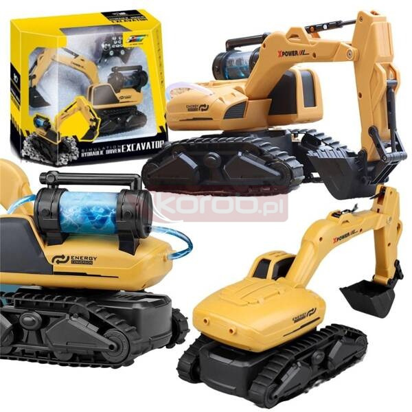 Koparka jest w pełni zdalnie sterowana za pomocą pilota, co zapewnia płynność działania i brak zakłóceń. Przycisk na pilocie kontroluje pracę łyżki - podnosi ją do góry i opuszcza w dół, przesuwa się do przodu i do tyłu. Również sama koparka może poruszać się do przodu, do tyłu, w prawo i w lewo, zapewniając pełen zakres ruchu.