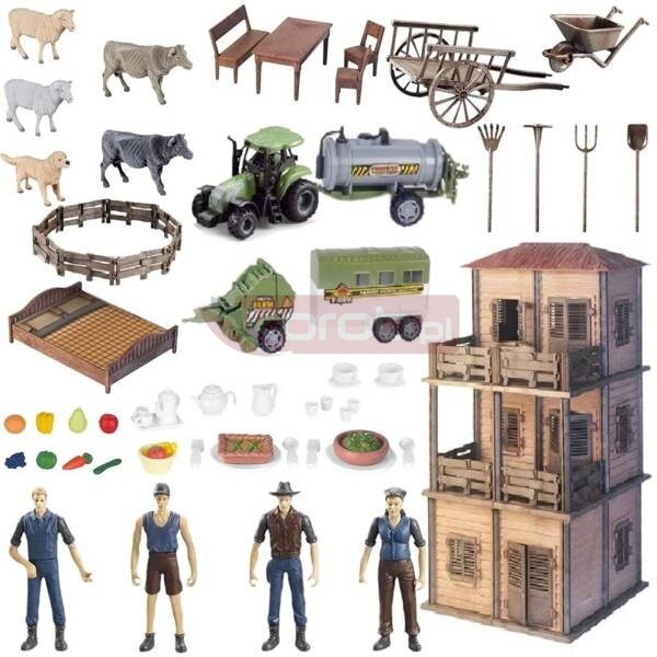 Zestaw ten składa się z wielu elementów, które pozwalają dziecku stworzyć swoją wymarzoną farmę. Domek, narzędzia rolnicze, stół, krzesła, ławka, łóżko, zwierzątka, owoce, naczynia i wiele innych detali tworzy realistyczne środowisko wiejskie. Dzieci uwielbiają interakcję, a w tym zestawie znajdują się zarówno sympatyczni rolnicy, jak i urocze zwierzątka wiejskie, takie jak krówki, owieczki i piesek. To doskonała okazja do rozwijania empatii i opiekuńczych umiejętności. Nie może zabraknąć tradycyjnego rolniczego traktora w tym zestawie. Dziecko może jeździć nim po farmie, przewozić owoce czy inne przedmioty i bawić się jak prawdziwy rolnik.