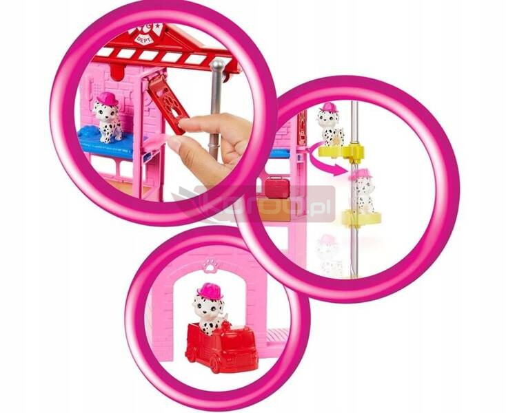 LALKA BARBIE STRAŻACZKA zestaw do zabawy z remizą strażacką i pieskiem HRG55