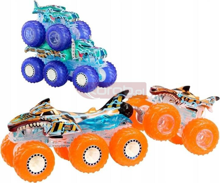 Zestaw zbiorczy Hot Wheels Monster Trucks Power Smashers Truck & Big Rig zawiera niezwykle popularne modele Tiger Shark i Mega Wrex z odpowiadającym im Big Rigiem zapewniającym niesamowitą niszczycielską moc. Każda zabawkowa ciężarówka w skali 1:64 i jej większy odpowiednik mają jasne i elektryzujące dekoracje Powers Smashers, które przenoszą akcję zderzenia na nowy poziom, podobnie jak serial w YouTube Kids! Po prostu przymocuj rekina tygrysiego do jego dużego zestawu i załaduj Mega-Wrexa na duży zestaw, a wielka walka może się rozpocząć. Dzięki specjalnemu opakowaniu Power Smashers, tym opakowaniem zbiorczym można wspaniale bawić się lub prezentować. Dzieci w wieku 3 lat i starsze pokochają przyciągające wzrok kolory i wzory!