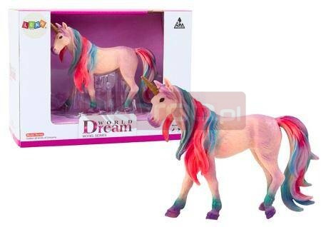 Figurka Kolekcjonerska Duży Jednorożec Fioletowy 11 CM Figurka jednorożca to wyjątkowy model, który z pewnością zachwyci każdą miłośniczkę tych baśniowych stworzeń. Jednorożec jest w kolorze fioletowym, co nadaje mu magiczny i tajemniczy wygląd. Dzięki realistycznie odwzorowanym fakturom, figurka wygląda niemal jak żywa, co dodatkowo podkreśla jej wyjątkowość. Grzywa i ogon jednorożca są kolorowe, co dodaje mu bajecznego uroku i sprawia, że figurka przyciąga wzrok swoimi żywymi barwami. Kolorowe elementy wspaniale kontrastują z fioletowym ciałem, tworząc harmonijną i estetyczną całość. Jednorożec, będący jednym z najbardziej rozpoznawalnych i ukochanych baśniowych stworzeń, staje się źródłem niekończącej się inspiracji i rozwoju wyobraźni. Dzieci, szczególnie wielbicielki jednorożców, mogą tworzyć nieskończone historie i przygody, korzystając z tej figurki, co rozwija ich kreatywność. Figurka jest wykonana z solidnego i trwałego materiału, co gwarantuje jej wytrzymałość i długowieczność. Dzięki temu jest odporna na uszkodzenia, co pozwala na intensywną zabawę bez obawy o zniszczenie. Dzięki swojemu estetycznemu wykonaniu, figurka jednorożca może służyć nie tylko jako zabawka, ale również jako urocza ozdoba pokoju lub element kolekcji. Wymiary figurki: 13,5cm x 11,5cm x 4cm Wymiary opakowania: 20cm x 15cm x 9,5cm Posiada certyfikat CE, ponadto jest zgodny z normą EN71. Przeznaczony dla dzieci powyżej 3 roku życia.