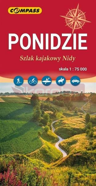 Rodzaj: mapa dwustronna z mini-przewodnikiem turystycznym na odwrocie Skala: 1:75'000 Rok wydania: 2024 Wydanie: 10 Format: B1 (68 x 98 cm) Ponidzie - mapa turystyczna w skali 1:75'000. Przedstawia jeden z ciekawszych turystycznie regionów Polski, położony w województwie świętokrzyskim nad dolną i środkową Nidą. Zasięg mapy wyznaczają: od północy - Chęciny; od południa - Proszowice; od zachodu - Jędrzejów i od wschodu - Staszów. Osią regionu jest rozległa dolina Nidy, otoczona pasmami niewysokich wzgórz i garbów. Wzdłuż Nidy leżą najstarsze miasta regionu: Chęciny, Pińczów, Wiślica i Nowy Korczyn. Interesująca historia tego obszaru, wspaniałe zabytki, uzdrowiska, jak również rzadkie w Polsce elementy środowiska - kras gipsowy, murawy kserotermiczne, wapienne i gipsowe wzgórza, silnie meandrująca Nida, tworząca starorzecza i rozlewiska oraz jedyna w Polsce delta śródlądowa sprawiają, że jest to wymarzone miejsce do odpoczynku. Gęsta sieć dróg, niewielkie natężenie ruchu, dość małe nachylenie terenu sprawiają, że jest to atrakcyjny teren na rower. Znakowane szlaki piesze łączą ze sobą najważniejsze miasta regionu, a wijąca się wśród łąk i pól Nida idealnie nadaje się do spływów kajakowych. Na obszarze tym rozwija się także turystyka konna. Doskonałe warunki do wypoczynku oraz uprawiania sportów wodnych daje utworzony na rzece Czarnej Staszowskiej zbiornik Chańcza. Na odwrocie mapy znajdują się plany centrum miast: Buska-Zdroju, Pińczowa i Jędrzejowa (1:20'000). Informator mapy wzbogacony został szczegółowym opisem szlaku kajakowego Nidy wraz z kilometrażem. Zamieszczono tu również opisy wartych zobaczenia zabytków, rezerwatów przyrody, uzdrowisk i innych atrakcji turystycznych. Mapa polecana jest do uprawiania różnych rodzajów turystyki, jak również dla osób zmotoryzowanych.