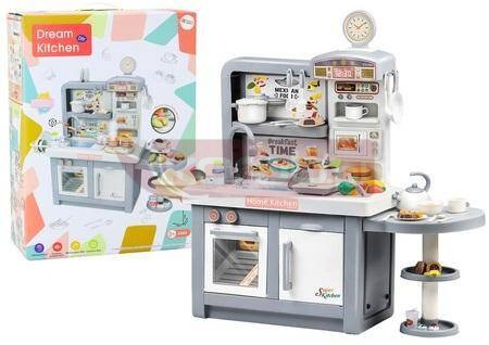 Kuchnia Marzeń Dla Dzieci Światła Dźwięki Para Akcesoria Szara Nasza kuchnia to doskonały prezent, który spełni te marzenia, umożliwiając maluchowi przygotowywanie ulubionych dań w bezpiecznym i kreatywnym środowisku. Dzięki tej kuchni, dzieci mają okazję poznać narzędzia i składniki używane w prawdziwej kuchni, co stanowi fantastyczne wprowadzenie do świata kulinariów i codziennego życia. Podczas zabawy naszą kuchnią, dzieci rozwijają swoją kreatywność. Ilość przygotowywanych przez nie potraw ogranicza jedynie ich wyobraźnia, co sprawia, że każda sesja kulinarna jest wyjątkowa i pełna nowych odkryć. Kuchnia jest utrzymana w siwej kolorystyce, co z pewnością przypadnie do gustu małym kucharzom, zachęcając je do spędzania czasu na kreatywnej zabawie. Wyposażona w mnóstwo potrzebnych akcesoriów, takich jak garnki, naczynia, potrawy, warzywa i owoce przystosowane do krojenia, nasza kuchnia zapewnia realistyczne doświadczenie gotowania. Każdy element jest starannie wykonany, aby maksymalnie oddać rzeczywistość, a jednocześnie zachować bezpieczeństwo zabawy. Dzięki temu dzieci mogą uczyć się, jak prawidłowo trzymać nożyk, mieszać składniki w garnkach, czy serwować posiłki na talerzach. Dodatkowo, nasza kuchnia posiada zaawansowane funkcje dźwięku, światła oraz pary wodnej, które dodają autentyczności i angażują dzieci na wiele godzin. Kiedy dziecko włącza palniki, pojawia się dźwięk gotującej wody oraz realistyczna para, która jednak jest całkowicie bezpieczna i nie jest gorąca. Świecące elementy i odgłosy kuchenne tworzą atmosferę prawdziwej kuchni, co sprawia, że zabawa staje się jeszcze bardziej ekscytująca. Dzięki tej kuchni, każde dziecko może poczuć się jak prawdziwy mistrz kulinarny, ucząc się jednocześnie cennych umiejętności. Rozpoznawanie różnych narzędzi kuchennych, składników oraz podstawowych technik gotowania to nie tylko zabawa, ale także nauka przez doświadczenie, co ma ogromne znaczenie w rozwoju każdego małego kucharza. Nasza kuchnia zabawka to inwestycja w rozwój dziecka, łącząca przyjemne z pożytecznym, a jednocześnie gwarantująca wiele godzin radosnej i twórczej zabawy. Kuchnia zasilana jest na baterie 2x 1.5V AA oraz 3X 1.5V AAA, które nie są elementem zestawu. Wymiary kuchni: 108cm x 98cm x 35,5cm Wymiary opakowania: 66cm x 48cm x 23,5cm Posiada certyfikat CE, ponadto jest zgodny z normą EN71. Przeznaczony dla dzieci powyżej 3 roku życia.