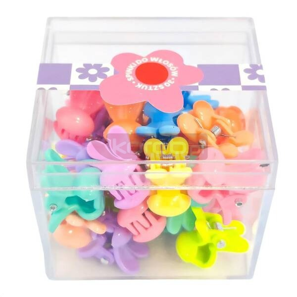 30szt/pudełko. Materiał: plastik Rozmiar klipsa: 1 cm. Rozmiar pudełka: 5.5x5.5x4.8 cm. 3 MODELE SPINEK DO WYBORU.