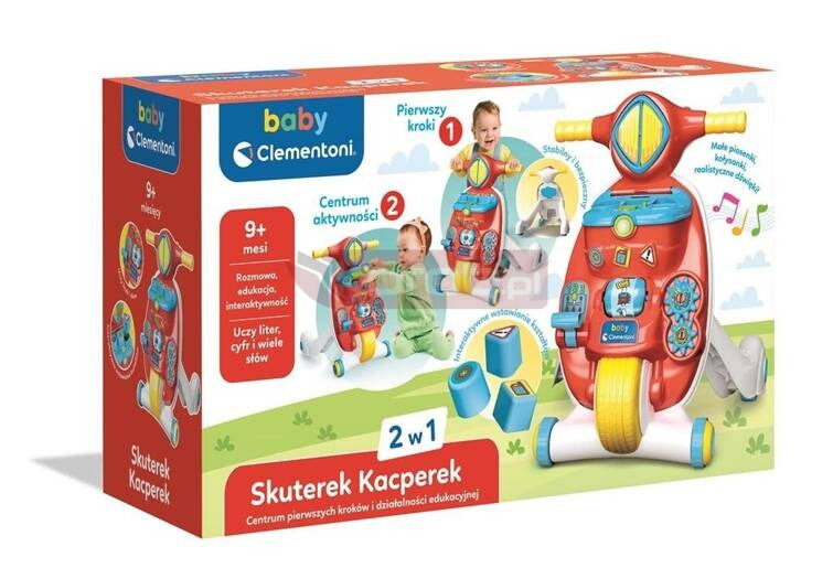 Skuter 2w1: Oryginalny chodzik z mechanicznym i elektronicznym centrum aktywności, z którym dziecko uczy się liter i cyfr oraz wielu edukacyjnych treści, rozwijając koordynację i zręczność manualną.