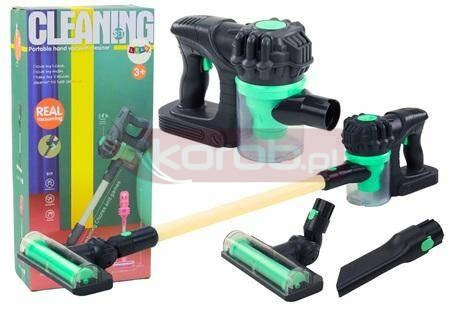 Odkurzacz Pionowy Zabawkowy Światła Dźwięki Czarny Zabawkowy odkurzacz pionowy to doskonała propozycja dla dzieci, które uwielbiają dbać o porządek i naśladować dorosłych w codziennych obowiązkach. Ten realistycznie zaprojektowany odkurzacz zachwyci każdego swoim wyglądem i funkcjonalnością. Odkurzacz został wyposażony w funkcję wydawania dźwięku, który wiernie imituje pracę prawdziwego urządzenia Jednym z kluczowych elementów odkurzacza jest otwierany pojemnik na kurz. W trakcie zabawy, dzieci mogą zobaczyć jak odkurzacz zbiera zanieczyszczenia, co dodaje zabawie realizmu i uczy o mechanizmach działania prawdziwych sprzętów domowych. Efekty świetlne w pojemniku dodają dodatkowego uroku i sprawiają, że odkurzacz wygląda naprawdę imponująco, zwłaszcza w ciemniejszych pomieszczeniach. Dodatkowo, odkurzacz jest wyposażony w dwie specjalne końcówki, które umożliwiają dzieciom dostosowanie zabawki do różnych zadań sprzątających. Dzięki nim, małe gospodynie i gospodarze mogą bawić się w odkurzanie różnych powierzchni, co zwiększa realizm i wszechstronność zabawy. Cały zestaw został wykonany z wysokiej jakości materiałów, które są bezpieczne dla dzieci i trwałe, zapewniając długie godziny zabawy. Zabawkowy odkurzacz pionowy to idealny prezent dla każdego dziecka, które lubi naśladować dorosłych i dbać o porządek. Odkurzacz zasilany jest na baterie 5x 1.5V AA, które nie są elementem zestawu. Wymiary odkurzacza: 60cm x 17cm x 15cm Wymiary opakowania: 43,5cm x 20,5cm x 10cm Posiada certyfikat CE, ponadto jest zgodny z normą EN71. Przeznaczony dla dzieci powyżej 3 roku życia.