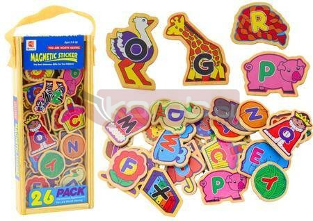Zestaw Magnesy Drewniane Literki Obrazki Zwierzęta Przedmioty 26 Sztuk Zestaw drewnianych magnesów to edukacyjna zabawka, która zawiera 26 kolorowych magnesów, każdy z nich przedstawiający różnorodne przedmioty lub zwierzęta oraz odpowiadającą mu literkę, na którą zaczyna się na dana nazwa. Magnesy wykonane są z wysokiej jakości drewna, co zapewnia ich trwałość i bezpieczeństwo podczas zabawy. Dzięki temu zestawowi, dziecko może w interaktywny sposób poznawać alfabet i uczyć się rozpoznawania liter, zwierząt i przedmiotów. Każdy magnes jest starannie zaprojektowany, aby przyciągnąć uwagę dziecka i zachęcić je do nauki poprzez zabawę. Magnesy można łatwo przyczepić do metalowych powierzchni, takich jak lodówka czy tablica magnetyczna, co umożliwia dziecku tworzenie słów i prostych zdań. Zabawa z magnesami pomaga rozwijać umiejętności motoryczne, koordynację ręka-oko, a także wzbogaca słownictwo i umiejętności językowe. Zestaw jest przechowywany w drewnianym pudełku, co nie tylko ułatwia jego organizację, ale również chroni magnesy przed zgubieniem lub uszkodzeniem. Dzięki temu pudełku, wszystkie elementy zestawu są zawsze na swoim miejscu, co dodatkowo ułatwia zabawę i sprzątanie po niej. Zestaw drewnianych magnesów to świetna pomoc dydaktyczna, która sprawdzi się zarówno w domu, jak i w przedszkolu. Zachęca do kreatywności, a jednocześnie wprowadza elementy nauki w codzienną zabawę dziecka. Wymiary opakowania: 28cm x 12cm x 3cm Posiada certyfikat CE, ponadto jest zgodny z normą EN71. Przeznaczony dla dzieci powyżej 3 roku życia.