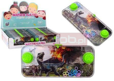 Gra Wodna Zręcznościowa Dinozaur Carnotaurus Konsola Pad Zielony To klasyczna wodna gra zręcznościowa z motywem dinozaura, często spotykana w formie niewielkiej, prostokątnej zabawki. Jej mechanizm jest prosty, ale bardzo wciągający. Gra ma kształt prostokąta, co sprawia, że jest wygodna do trzymania w dłoniach. Po prawej i lewej stronie urządzenia znajdują się dwa zielone przyciski, są kluczowe do gry i są łatwo dostępne dla palców gracza. W środku gry, w przezroczystym zbiorniku wypełnionym wodą, znajdują się kolorowe obręcze. Są one swobodnie unoszące się wewnątrz cieczy. W dolnej części gry wystają dwa szpice, na które należy nadziać obręcze. Szpice te są celami, do których gracz musi trafić obręczami. Gracz naciska zielone przyciski, aby wprawić w ruch obręcze. Naciśnięcie jednego z przycisków powoduje, że strumień wody wypycha obręcze w górę. Zadanie gracza polega na precyzyjnym dozowaniu siły nacisku na przyciski. Mocniejsze wciśnięcie przycisku powoduje, że obręcz porusza się wyżej, podczas gdy słabsze naciskanie skutkuje mniejszym ruchem. Wymaga to zręczności i wyczucia. Celem gry jest umieszczenie obręczy na dwóch wystających szpicach. Osiągnięcie tego celu wymaga precyzyjnego sterowania ruchem obręczy, co jest głównym wyzwaniem w grze. Gra rozwija zręczność, koordynację ruchową oraz cierpliwość. Jest prostym, ale efektywnym sposobem na zabawę, oferującym wiele godzin rozrywki dla dzieci i dorosłych. Pomimo swojej prostoty, wymaga precyzyjnej kontroli i umiejętności przewidywania ruchu obręczy, co sprawia, że jest wyzwaniem nawet dla bardziej wprawionych graczy. Wymiary gry: 15 cm x 7 cm x 1 cm Oferta dotyczy jednej sztuki, w opakowaniu zbiorczym znajdują się 24 gry. Posiada certyfikat CE, ponadto jest zgodny z normą EN71. Zabawka przeznaczona jest dla dzieci powyżej 3 roku życia.