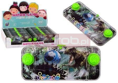 Gra Wodna Zręcznościowa Dinozaur Stegozaur Konsola Pad Zielony To klasyczna wodna gra zręcznościowa z motywem dinozaura, często spotykana w formie niewielkiej, prostokątnej zabawki. Jej mechanizm jest prosty, ale bardzo wciągający. Gra ma kształt prostokąta, co sprawia, że jest wygodna do trzymania w dłoniach. Po prawej i lewej stronie urządzenia znajdują się dwa zielone przyciski, są kluczowe do gry i są łatwo dostępne dla palców gracza. W środku gry, w przezroczystym zbiorniku wypełnionym wodą, znajdują się kolorowe obręcze. Są one swobodnie unoszące się wewnątrz cieczy. W dolnej części gry wystają dwa szpice, na które należy nadziać obręcze. Szpice te są celami, do których gracz musi trafić obręczami. Gracz naciska zielone przyciski, aby wprawić w ruch obręcze. Naciśnięcie jednego z przycisków powoduje, że strumień wody wypycha obręcze w górę. Zadanie gracza polega na precyzyjnym dozowaniu siły nacisku na przyciski. Mocniejsze wciśnięcie przycisku powoduje, że obręcz porusza się wyżej, podczas gdy słabsze naciskanie skutkuje mniejszym ruchem. Wymaga to zręczności i wyczucia. Celem gry jest umieszczenie obręczy na dwóch wystających szpicach. Osiągnięcie tego celu wymaga precyzyjnego sterowania ruchem obręczy, co jest głównym wyzwaniem w grze. Gra rozwija zręczność, koordynację ruchową oraz cierpliwość. Jest prostym, ale efektywnym sposobem na zabawę, oferującym wiele godzin rozrywki dla dzieci i dorosłych. Pomimo swojej prostoty, wymaga precyzyjnej kontroli i umiejętności przewidywania ruchu obręczy, co sprawia, że jest wyzwaniem nawet dla bardziej wprawionych graczy. Wymiary gry: 15 cm x 7 cm x 1 cm Oferta dotyczy jednej sztuki, w opakowaniu zbiorczym znajdują się 24 gry. Posiada certyfikat CE, ponadto jest zgodny z normą EN71. Zabawka przeznaczona jest dla dzieci powyżej 3 roku życia.