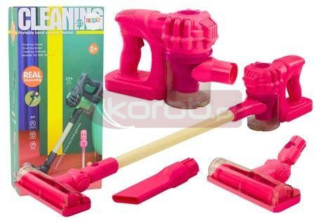 Odkurzacz Pionowy Zabawkowy Światła Dźwięki Różowy Zabawkowy odkurzacz pionowy to doskonała propozycja dla dzieci, które uwielbiają dbać o porządek i naśladować dorosłych w codziennych obowiązkach. Ten realistycznie zaprojektowany odkurzacz zachwyci każdą małą Panią domu swoim wyglądem i funkcjonalnością. Odkurzacz został wyposażony w funkcję wydawania dźwięku, który wiernie imituje pracę prawdziwego urządzenia Jednym z kluczowych elementów odkurzacza jest otwierany pojemnik na kurz. W trakcie zabawy, dzieci mogą zobaczyć jak odkurzacz zbiera zanieczyszczenia, co dodaje zabawie realizmu i uczy o mechanizmach działania prawdziwych sprzętów domowych. Efekty świetlne w pojemniku dodają dodatkowego uroku i sprawiają, że odkurzacz wygląda naprawdę imponująco, zwłaszcza w ciemniejszych pomieszczeniach. Dodatkowo, odkurzacz jest wyposażony w dwie specjalne końcówki, które umożliwiają dzieciom dostosowanie zabawki do różnych zadań sprzątających. Dzięki nim, małe gospodynie i gospodarze mogą bawić się w odkurzanie różnych powierzchni, co zwiększa realizm i wszechstronność zabawy. Cały zestaw został wykonany z wysokiej jakości materiałów, które są bezpieczne dla dzieci i trwałe, zapewniając długie godziny zabawy. Zabawkowy odkurzacz pionowy to idealny prezent dla każdego dziecka, które lubi naśladować dorosłych i dbać o porządek. Z pewnością spodoba się każdej małej Pani domu, inspirując do zabawy i nauki jednocześnie. Odkurzacz zasilany jest na baterie 5x 1.5V AA, które nie są elementem zestawu. Wymiary odkurzacza: 60cm x 17cm x 15cm Wymiary opakowania: 43,5cm x 20,5cm x 10cm Posiada certyfikat CE, ponadto jest zgodny z normą EN71. Przeznaczony dla dzieci powyżej 3 roku życia.