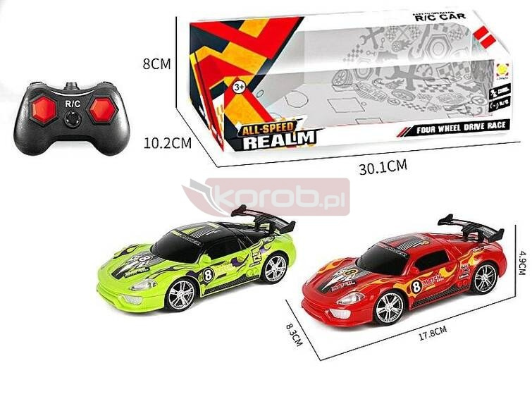 auto sportowe 1:22 na radio 18x8x5cm, 2 funkcyjne; 30x10x8cm, W/B