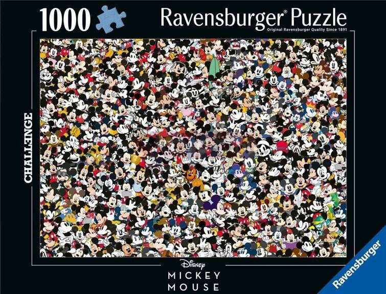 Puzzle 1000 elementów Ravensburger z serii Challenge to idealny produkt dla wszystkich poszukujących wyzwań! Układanka posiada motyw z Myszką Miki, ułożony jednak w takiej sekwencji, że trzeba wytężyć wzrok, aby podołać zadaniu. Po ułożeniu puzzle mają wymiary 70 x 50 cm.