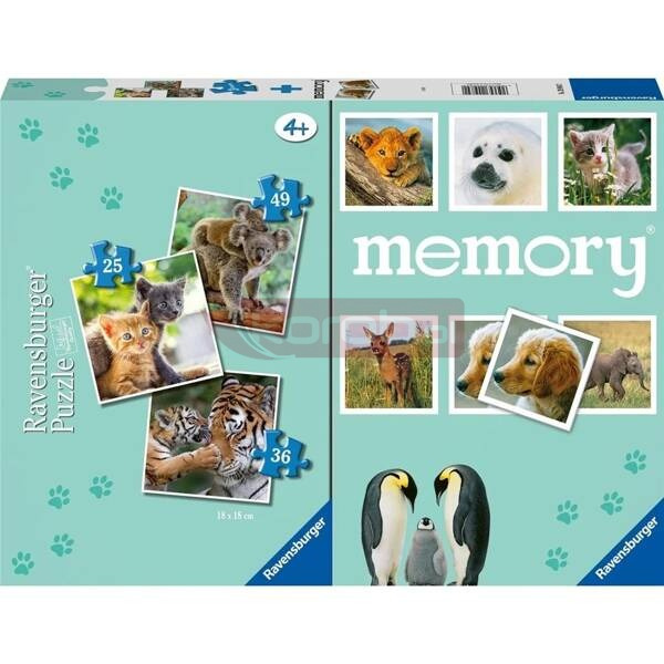 Puzzle 2D 3w1 + memory Dzieci Zwierząt