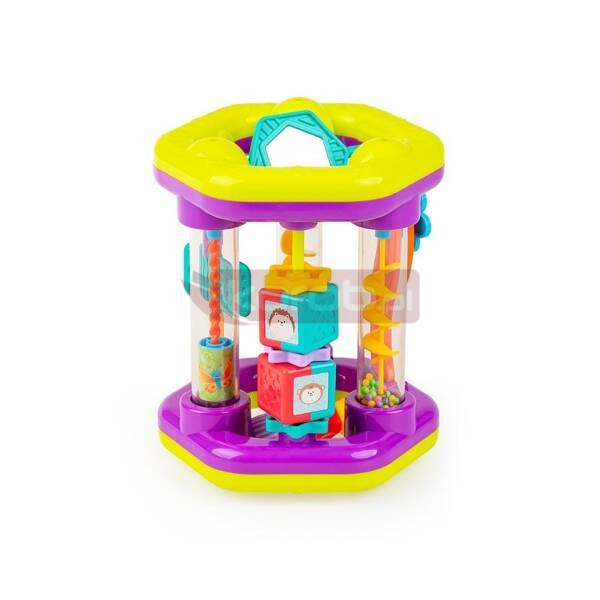 Jedna zabawka, w której kryje się cała masa atrakcji dla bobasa! Na każdej ze ścianek Rolusia znajduje się inna zabawa, aktywizująca małe rączki. Znajdziemy tu kwiatek do przesuwania, obrazki zwierzątek do obracania, grzechotki, bezpieczne lusterko, a nawet zjeżdżalnie z koralikami. Wszystkie te ruchome i grzechoczące elementy mają za zadanie jak najlepiej stymulować zmysły maluszka, zachęcając go przy tym do aktywnej, sensorycznej zabawy!