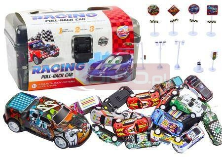 Zestaw resoraków w walizce 25szt znaki drogow auta
