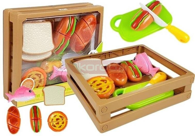 Zabawka jest rewelacyjnym zestawem dla dziecka, które marzy o samodzielnym przygotowywaniu potraw. Zestaw składa się z dużej liczby elementów, gwarantujących udaną zabawę, podczas której można stworzyć między innymi hot doga, a także zaserwować rybę czy na deser babeczkę. Zabawa z wykorzystaniem prezentowanego zestawu rozwinie umiejętności motoryczne dziecka, a także pozytywnie wpłynie na jego logiczne myślenie oraz kreatywność.