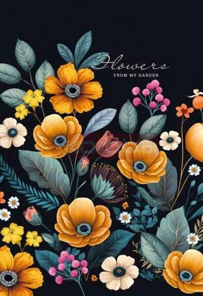 Notatnik 105x165 64 kartki linia 23255 kwiaty. Wyprodukowano na Ukrainie.