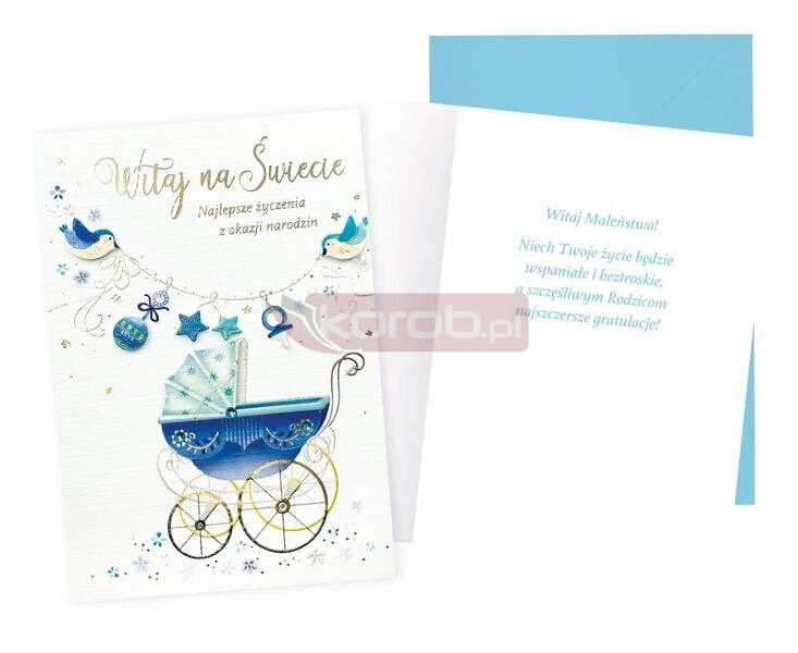 Kartka B6 z ozdobnej serii Dream Cards na narodziny dla chłopca - nieduża, ale robi wrażenie dzięki atrakcyjnej kolorystyce i ciekawym zdobieniom.