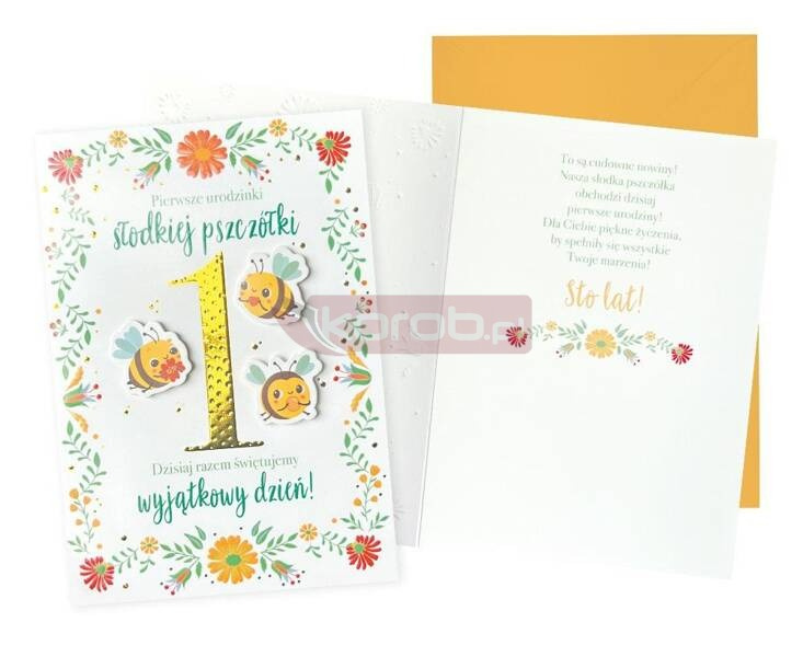 Kartka B6 z ozdobnej serii Dream Cards na 1 urodziny - nieduża, ale robi wrażenie dzięki atrakcyjnej kolorystyce i ciekawym zdobieniom.