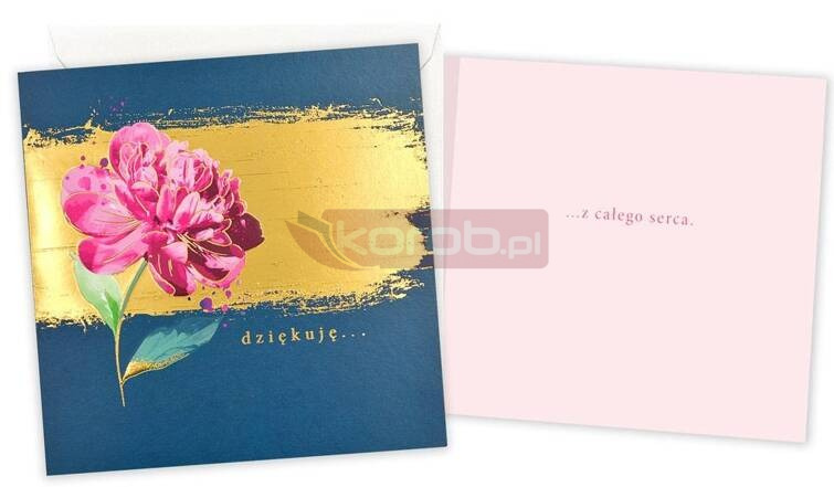 Kartka z serii Quadro to idealny pomysł na piękną pamiątkę. Kartki wyróżniają się nowoczesnym designem przedstawionym w prostej formie. Środek każdej kartki posiada specjalnie dopasowane życzenia z miejscem na własną dedykację. Całość idealnie dopełnia koperta zaprojektowana z dbałością o każdy detal pasujący do kartki. Cechy szczególne: wielkość: 15.5 x 15.5 cm po złożeniu koperta: stylistycznie dopasowana do kartki zdobienia: połyskująca folia okazja: podziękowania