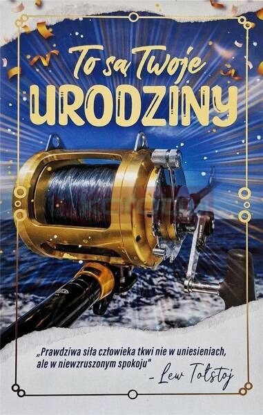 Karnet 2k. Klasyczny karnet na urodziny dla miłośnika wędkowania. Uszlachetniony wysokiej jakości hotstampingiem ( złocenie ). Karnet zawiera życzenia.