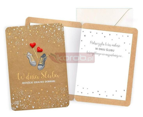 Kartka Dream Cards "W dniu Ślubu" DK-1024 Kartka B6 z ozdobnej serii Dream Cards na ślub - nieduża, ale robi wrażenie dzięki atrakcyjnej kolorystyce i ciekawym zdobieniom. To idealny wybór łączący przyjazną cenę z jakością. Cechy szczególne: wielkość: B6, 16.6 x 11.7 cm po złożeniu, koperta: w zestawie, kolorowa, zdobienia: kolorowe, różnorodne, bogate (w zależności od wzoru: przyklejane dekoracje, elementy biżuteryjne, odstawniki, brokat metaliczne folie, tłoczenia itp.), okazja: Ślub