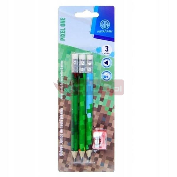 ASTRA OŁÓWEK TRÓJKĄTNY DO NAUKI PISANIA 3 szt + temperówka PIXELE 4944