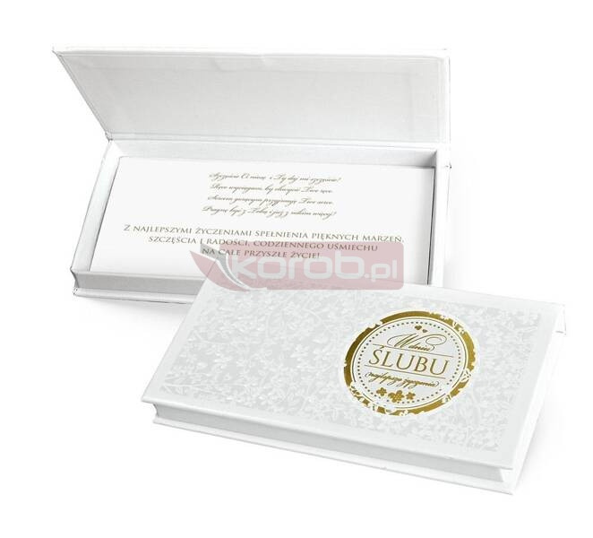 Pudełko jest eleganckim sposobem na podarowanie bliskiej osobie banknotu lub karty podarunkowej. Pudełko ozdobne jest uszlachetnione metalizowaną folią hot-stamp, co nadaje mu wyjątkowego charakteru. W zależności od wzoru, na pudełkach znajdują się dekoracje ze złotej, srebrnej lub perłowej folii. Dzięki wbudowanemu magnesikowi można je wielokrotnie zamykać i otwierać. To doskonały wybór na okazję, która wymaga gustownego i praktycznego opakowania prezentowego. Posiadają życzenia w środku.