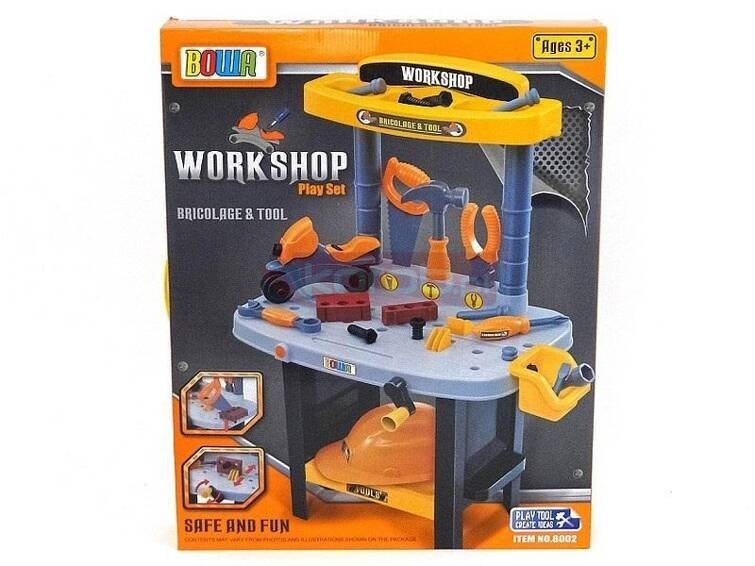 Stół do majsterkowania z zestawem narzędzi i kaskiem; 61x48x9cm Box
