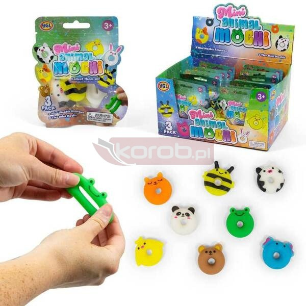 Zestaw trzech uroczych zwierzątek z dziurką w środku. Te urocze i przytulne mochi z pewnością ucieszą serce każdego miłośnika zwierząt.