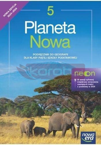 Podręcznik Planeta Nowa jest przeznaczony do nauczania geografii w klasie piątej szkoły podstawowej. W przejrzysty sposób prezentuje treści dotyczące mapy, a także kontynentów i oceanów na Ziemi, krajobrazów Polski oraz krajobrazów świata. Podręcznik zawiera rozwiązania znane uczniom z podręcznika Tajemnice przyrody dla klasy czwartej, przez co umożliwia łagodne przejście po kursie przyrody w fascynujący świat geografii.