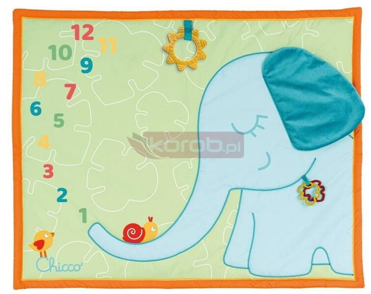 Mata jest obszerna, ma wymiary 72 x 90 cm i na co dzień może służyć jako mata do zabawy, dzięki wielu aktywnościom.