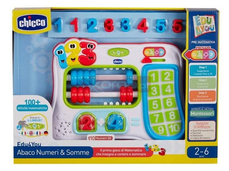 LICZYDŁO to pierwsza mówiąca zabawka matematyczna Chicco, która nauczy liczenia i sumowania. Prowadzi dziecko krok po kroku po świecie liczb i posiada funkcję autokorekty.