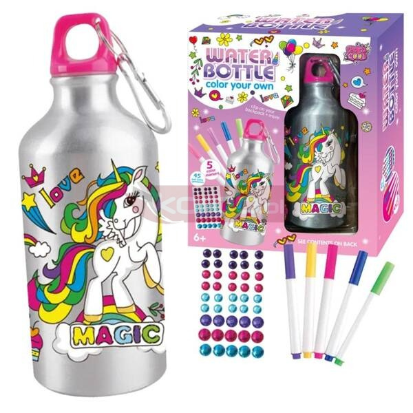 akcesoria do ozdabiania: Zestaw zawiera akcesoria, takie jak kolorowe pisaki i naklejki z diamentami, niezbędne do tworzenia indywidualnych wzorów na bidonie. Dzięki nim, dzieci mogą wyrazić swoją kreatywność i stworzyć unikalną butelkę, którą z dumą będą nosić,