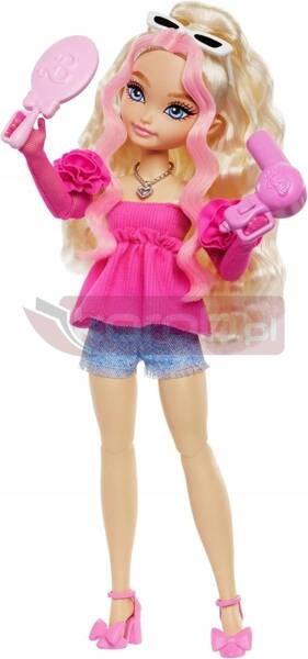 Lalka Barbie Dream Besties Barbie „Malibu” pokazuje, że jeśli dzielisz się ze światem swoimi wyjątkowymi talentami, wszystko jest możliwe! Barbie „Malibu” marzy o własnej firmie kosmetycznej! W zestawie znajdują się akcesoria o tematyce kosmetycznej, takie jak kopertówka, okulary przeciwsłoneczne, suszarka do włosów, lusterko do ręki, szminka i róż, a także telefon i etui na telefon .Lalka jest ruchoma i ma na sobie zdejmowane ubranka, takie jak różowy top z peplum, dżinsowe spodenki, rękawiczki i szpilki! Lalka Barbie „Malibu” ma długie blond, falowane włosy spięte w kucyk, a różowe włosy okalają jej twarz, co podkreśla jej wyrazistą osobowość! Zestaw lalek to świetny prezent dla dzieci w wieku od 4 lat, zwłaszcza tych, które kochają makijaż i stylizację!