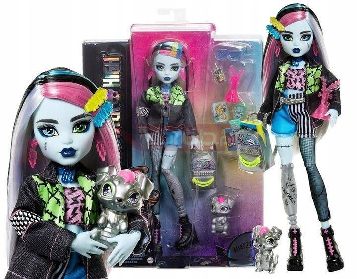 LALKA MONSTER HIGH Frankie Stein + zwierzątko piesek Watzie HXH73