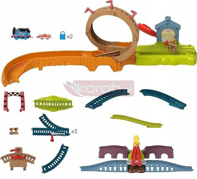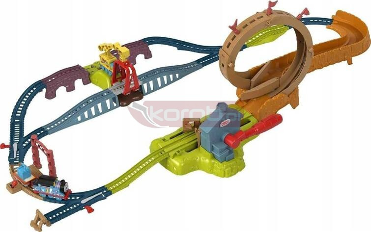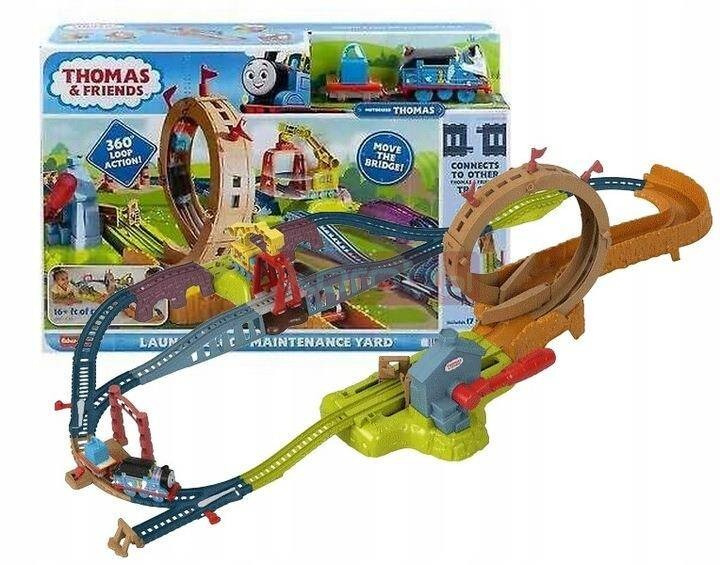 Tomek i przyjaciele Zabawkowa kolejka Loop & Launch Plac konserwacyjny z lokomotywą Tomka i dźwigiem Carly dla dzieci w wieku od 3 lat HJY30