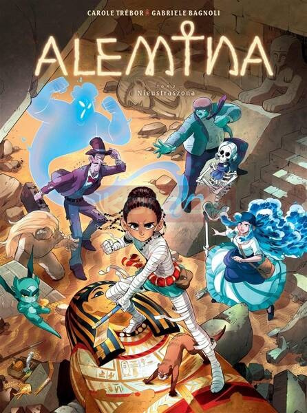 Drugi tom opowieści o przygodach mumii starożytnej księżniczki we współczesnym świecie. Alemina wyrusza z Wyjątkowymi na poszukiwanie innych klanów niezwykłych istot, aby zebrać je w armię zdolną pokonać organizację bezwzględnych Molossów. Księżniczka będzie musiała się nauczyć posługiwania magicznymi przedmiotami podarowanymi jej przez matkę, bo bez nadnaturalnego wsparcia nie zdoła przeciwstawić się tajemniczemu przywódcy Molossów. Aleminę czeka mnóstwo wyzwań, na szczęście może liczyć na towarzyszy dysponujących przedziwnymi zdolnościami! Autorką scenariusza jest francuska historyczka, pisarka i autorka filmów dokumentalnych Carole Trbor, laureatka licznych nagród literackich za cykl powieści o Ninie Volkovitch. Jako scenarzystka komiksowa została doceniona za album kryminalny "Rouges estampes" i serię dla dzieci "Paloma". Gabriele Bagnoli to włoski rysownik i kolorysta pracujący przede wszystkim dla wydawców włoskich, a na rynku francuskim znany z serii fantastycznej "La Bulle".