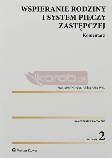 Prezentowane opracowanie jest komentarzem do ustawy z 9.06.2011 r. o wspieraniu rodzin i systemie pieczy zastępczej, w której zostały unormowane m. in. takie zagadnienia, jak: wspieranie rodzin w procesie wychowania dzieci, zapewnienie dziecku opieki w przypadku niemożności zapewnienia takiej opieki przez rodziców naturalnych, usamodzielnianie osób opuszczających pieczę zastępczą, a także problematyka adopcji dzieci. W komentarzu przedstawiono dorobek doktryny prawa administracyjnego i rodzinnego z zakresu objętego analizowanym aktem, a także dorobek orzeczniczy sądów powszechnych oraz sądów administracyjnych. W obecnym wydaniu uwzględniono wszystkie nowelizacje komentowanej ustawy, które pojawiły się od ostatniego wydania, w tym dokonane: ustawą z 15.05.2024 r. o wspieraniu rodziców w aktywności zawodowej oraz w wychowaniu dziecka - "Aktywny rodzic" (Dz.U. poz. 858) i wprowadzające do systemu prawnego trzy świadczenia wspierające rodziców w aktywności zawodowej oraz w wychowaniu dziecka, tj. świadczenie "aktywni rodzice w pracy", świadczenie "aktywnie w żłobku" oraz świadczenie "aktywnie w domu". Świadczenia te będą realizowane od 1 października 2024 r. ustawą z 26.04.2024 r. o zmianie ustawy o pomocy społecznej oraz niektórych innych ustaw (Dz.U. poz. 743) i dotyczące programu "Dofinansowanie wynagrodzeń pracowników jednostek wspierania rodziny i systemu pieczy zastępczej na lata 2024-2027", umożliwiającego jednostkom samorządu terytorialnego dokonania wypłaty dodatków motywacyjnych dla pracowników systemu wspierania rodziny, pieczy zastępczej oraz adopcji. Publikacja przeznaczona jest dla pracowników organów pomocy społecznej, ośrodków adopcyjnych, samorządowych kolegiów odwoławczych oraz organizacji pozarządowych. Będzie przydatna również sędziom sądów administracyjnych i sądów powszechnych orzekającym w sprawach pieczy zastępczej, radcom prawnym i adwokatom zajmującym się problemami rodziny.