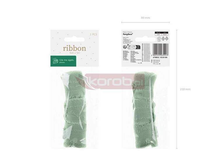 Wstążka szyfonowa w kolorze pistacjowym, szerokość ok. 40 mm, długość ok. 5 m.(1 op. / 3 szt.)