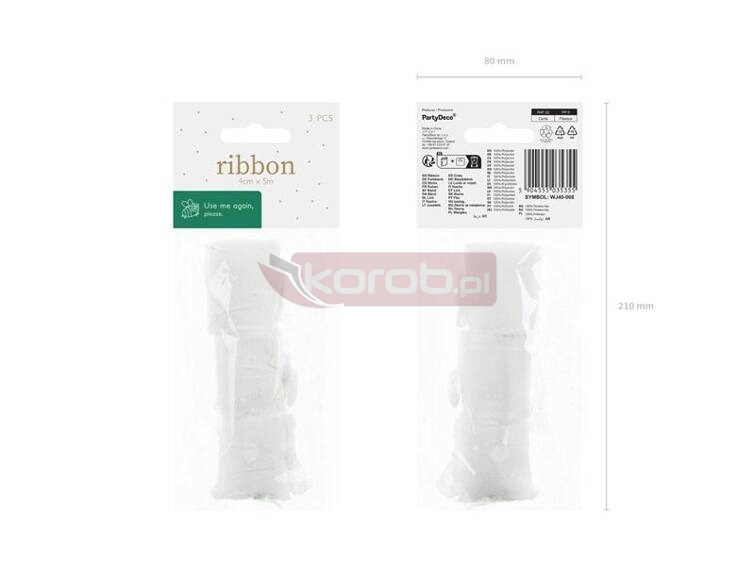 Wstążka szyfonowa w kolorze białym, szerokość ok. 40 mm, długość ok. 5 m.(1 op. / 3 szt.)
