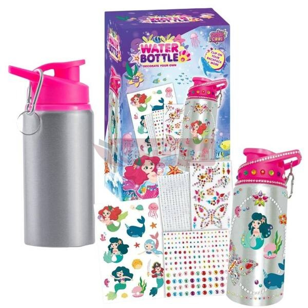 Zestaw zawiera butelkę na wodę, naklejki oraz różnokolorowe diamenciki. Dzieci mogą wybierać spośród różnych wzorów i układów, tworząc własne, unikalne dzieła sztuki.