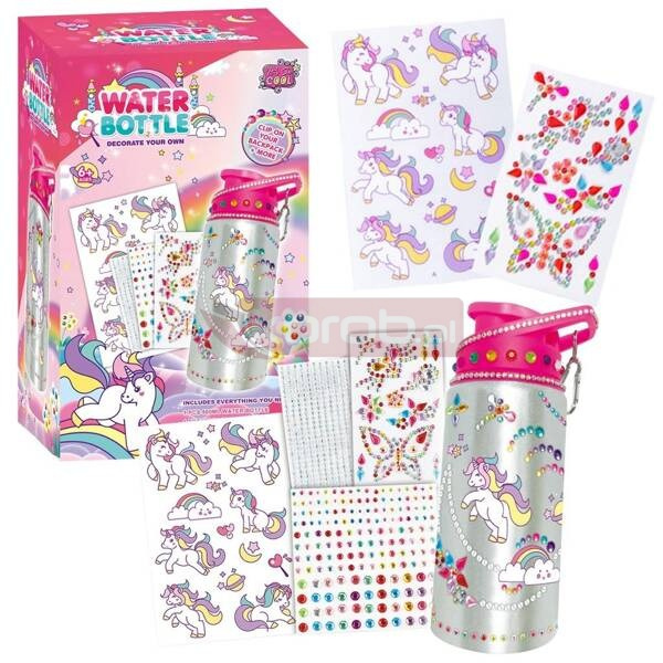 Zestaw zawiera butelkę na wodę, naklejki oraz diamenciki, co pozwala na tworzenie unikalnych kompozycji. Tworzenie unikatowej butelki to szansa na rozwijanie wyobraźni i zdolności manualnych. Dziecko może eksperymentować z różnymi kształtami i kolorami, tworząc swoje własne wzory.