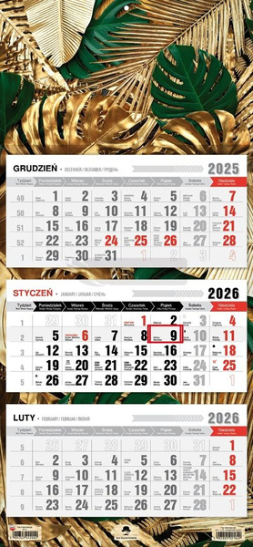 Kalendarz 2026 trójdzielny płaska główka glamour
