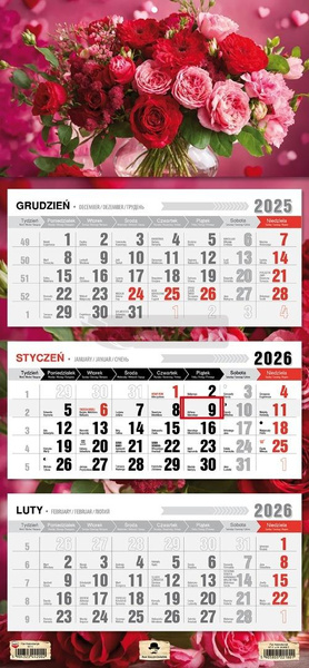 Kalendarz 2026 trójdzielny płaska główka bukiet