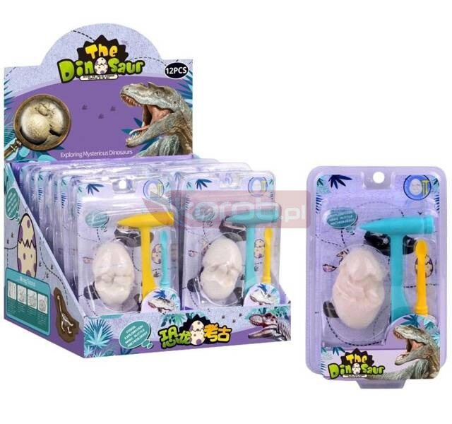 Zestaw zawiera gipsowy odlew z którego za pomocą narzędzi należy wydobyć szkielet dinozaura, świetny zestaw, który pozwoli dziecku poczuć się jak naukowiec paleontolog.